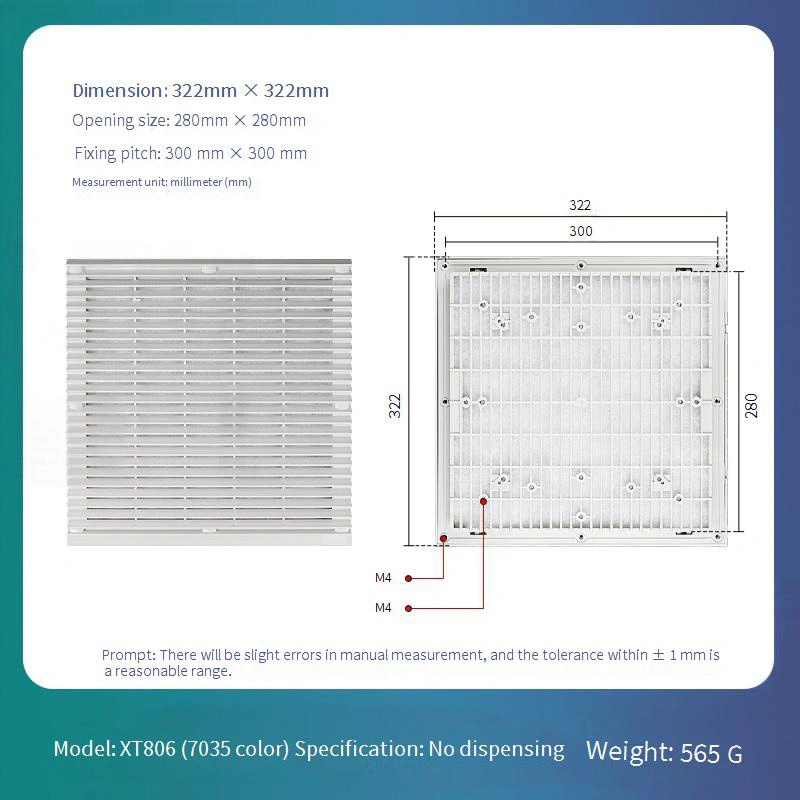 Установка вимагає лише очищення кріпильної поверхні, вирівнювання пилової кришки та притискання її до місця. Рекомендується проводити щоквартальні перевіри на накопичення пилу за допомогою пилососного очищувача або стисненого повітря для очищення. Замініть негайно, коли ефективність вентиляції помітно знижується або пошкодження виникає для підтримки ефективності захисту.