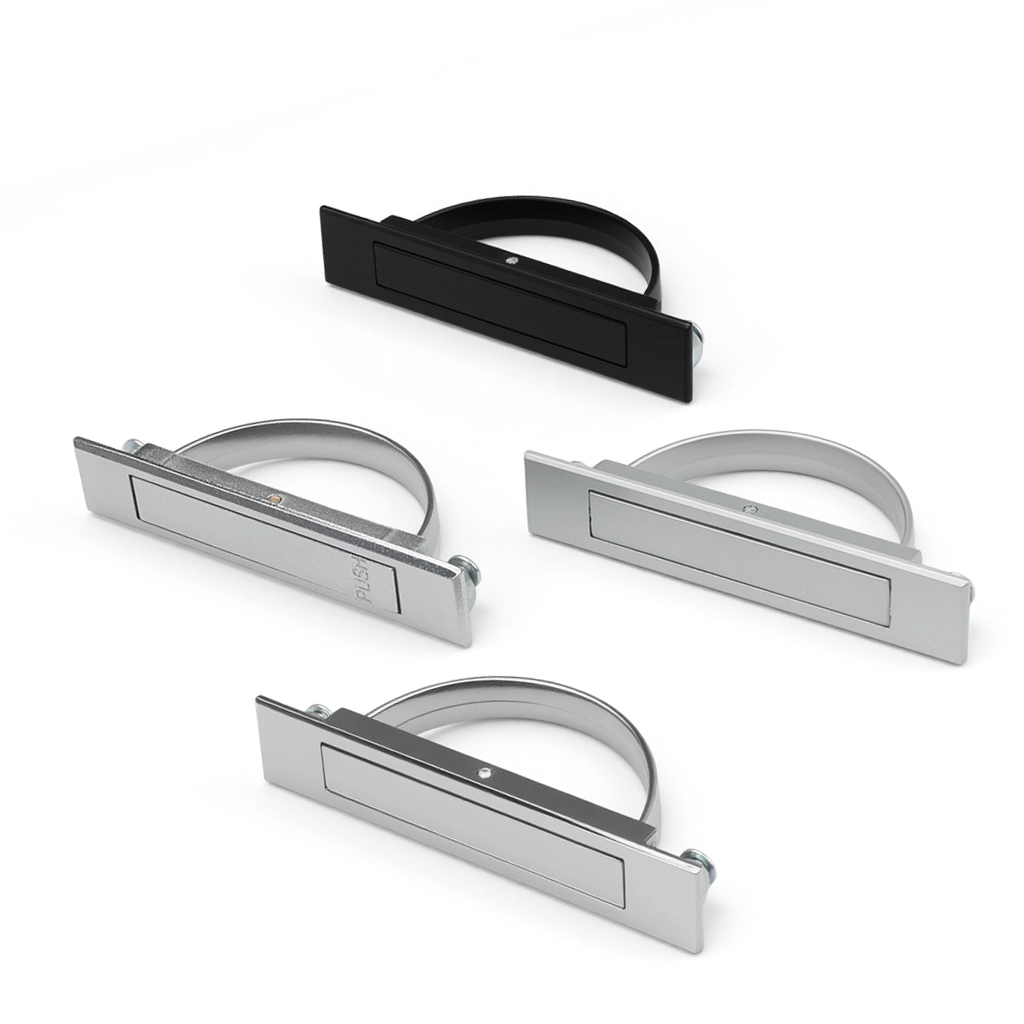 Прихована ручка виготовлена з цинкового сплаву. Він доступний у чотирьох кольорах: чорний, матовий, піскодворний та відшліфований хром. Ці поверхневі процедури розширюють термін експлуатації продукту і запобігають згасанням або лущенням.
