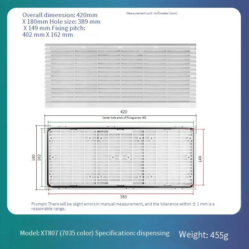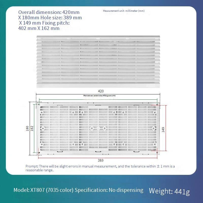 Основна змінна конструкція сітки для легкого щоденного обслуговування та заміни, значно зменшуючи довгострокові експлуатаційні витрати. Структура кадру доступна у стандартному кольорі біло-сірого 7035. Він побудований з матеріалу ABS, який пропонує відмінну стійкість до деформації, забезпечуючи довгострокову стабільність.